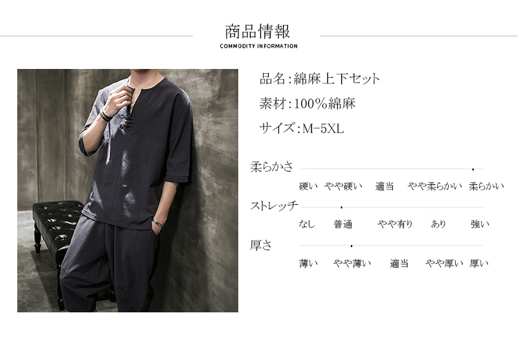 綿麻上下セット 紳士